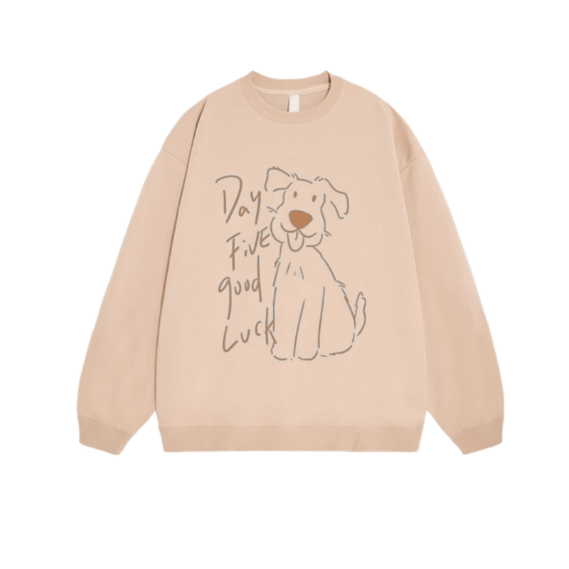 - Features an artistic line drawing of a dog, adding a unique and creative touch to your ensemble.
